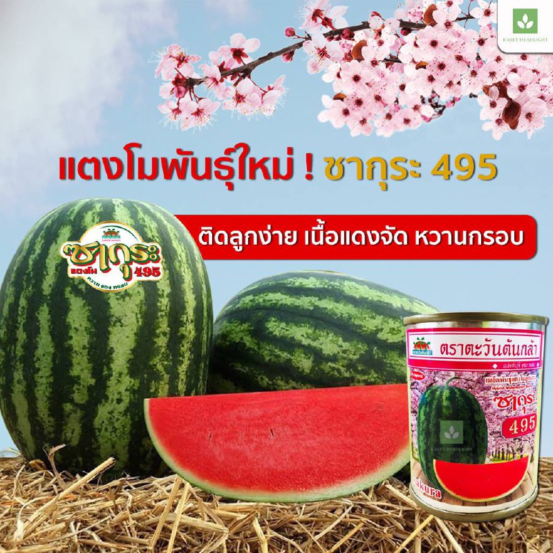 منتج تايلندي ، يعتبر نوع جديد من أنواع البطيخ التي يطلق عليها ساكورا ويعتبر من البذور الهجينة(F1) وملائمه لأجواء الخليج ومن خصائصه يتميز بقشرة مخططة بخطوط خضراء داكنة ،لحم أحمر داكن حلو ومقرمش  وحلاوة عالية من 12-15بركس ومقاوم جيد للامراض وقت الحصاد من 60-65 يوم بعد البذر.غزير الإنتاج حجم الثمر من 5-7 كجم